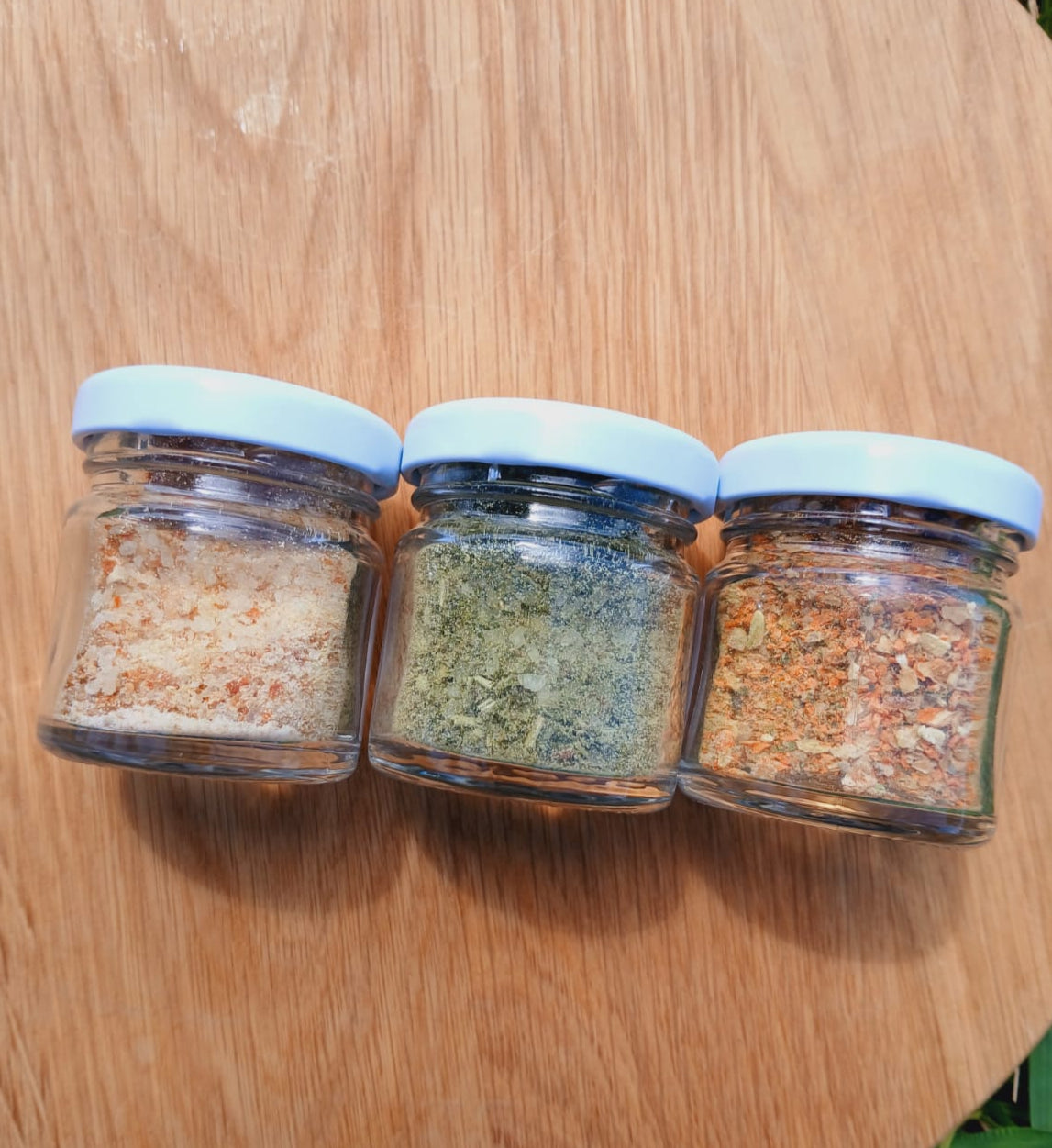 3 vasetti con contenuto variabile tra 15 e 30g ciascuno.