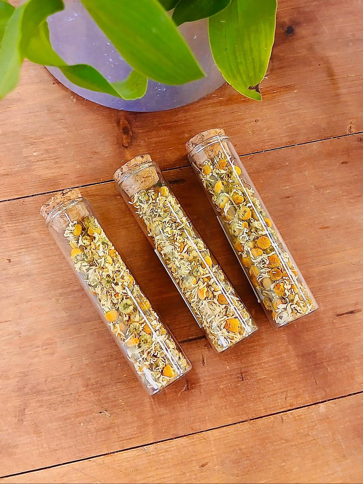 Questa fialetta racchiude tutta la purezza e la calma di un campo di camomilla: un piccolo scrigno di benessere, da aprire ogni volta che desideri ritrovare un momento di quiete e autenticità .