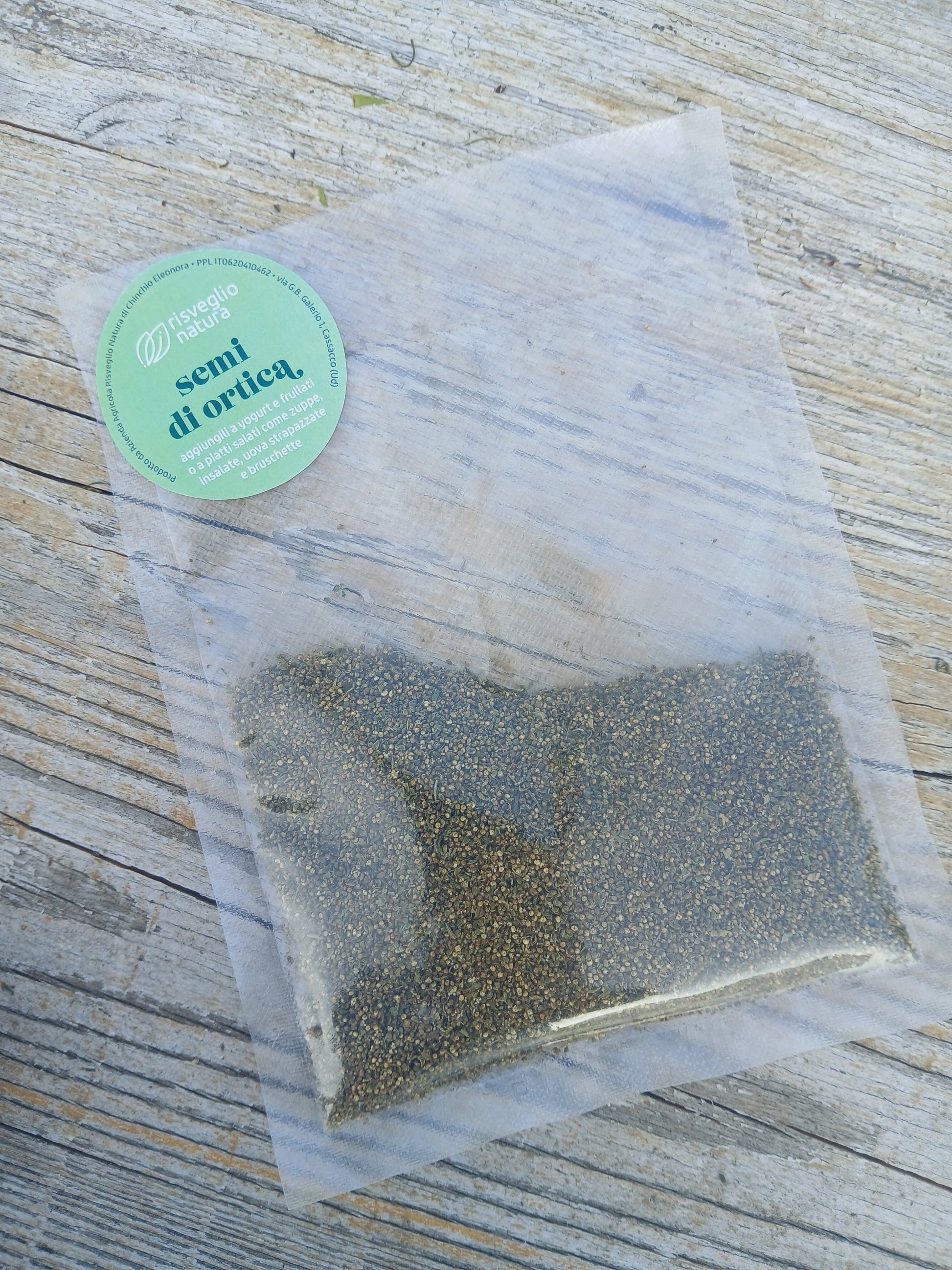 Da aggiungere a frullati, granole, yogurt, uova, pane, insalate o mix vegetali, i semi di ortica portano una nota rustica e naturale, capace di valorizzare ogni preparazione.